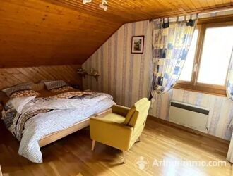 Maison de 125,5 m² (dont 8 m² au sol), entretenue et lumineuse, sans vis-à-vis, composée d'une cuisine équipée récente, salon/séjour avec poêle à granules, accès sur une jolie terrasse double et bien orientée.