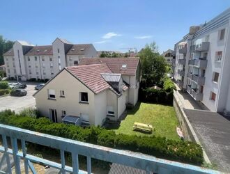 Appartement T3 au 1er étage, de 63,30 m² avec une pièce à vivre accès avec balcon, très lumineux, avec une belle vue sur la ville, deux chambres, une grande cave et un garage.